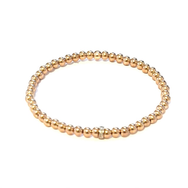 This listing is for one 4mm Gold Filled Bead Stretch Bracelet with one 14K Gold 5mm Diamond Roundel Spacer Bead (7Pcs Diamond,0.03Cts). Choose between Gold or Rose Gold.