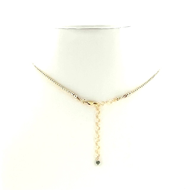 14K Green Sapphire (4mm) Pendant Gold Filled Bead necklace measures 16.5″ with a 2″ extension chain with AAA emerald drop accent.