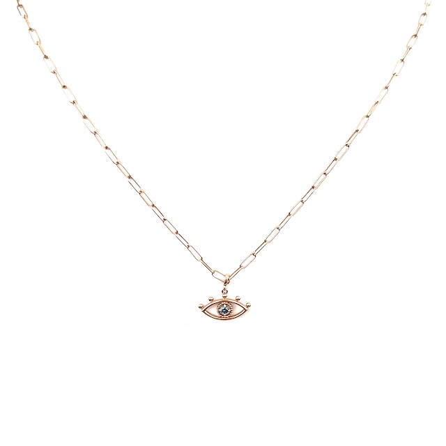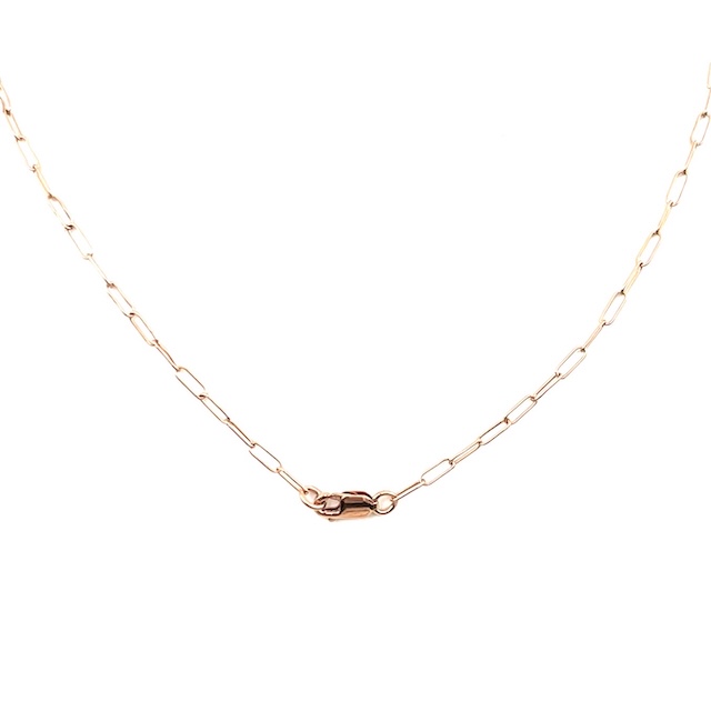 13x8mm 14K Rose Gold Blue Diamond (1 diamond, 0.033 Carat total diamond weight), paperclip chain is 14K gold filled and it is 18″.