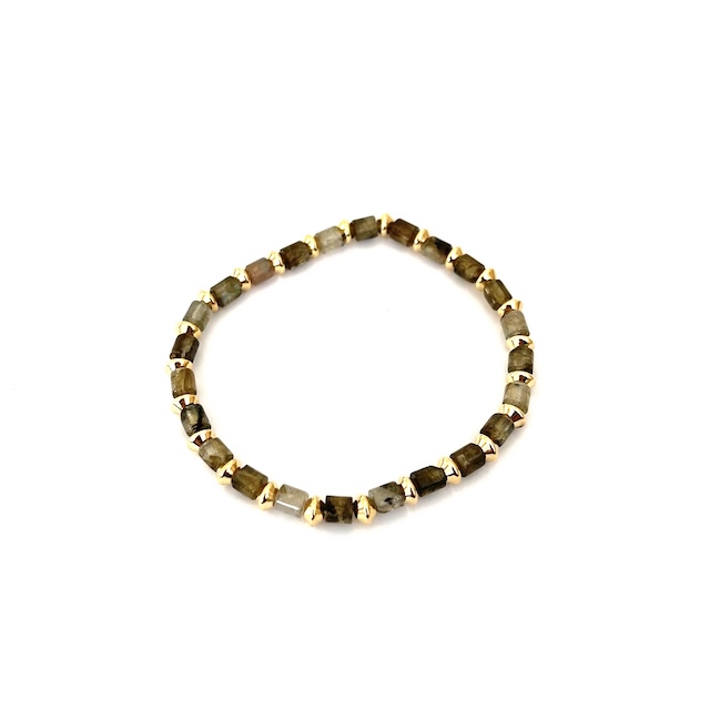 Natural Labradorite (4x6mm) Gold Filled Bead stretch bracelet with gold filled bicone accent beads.